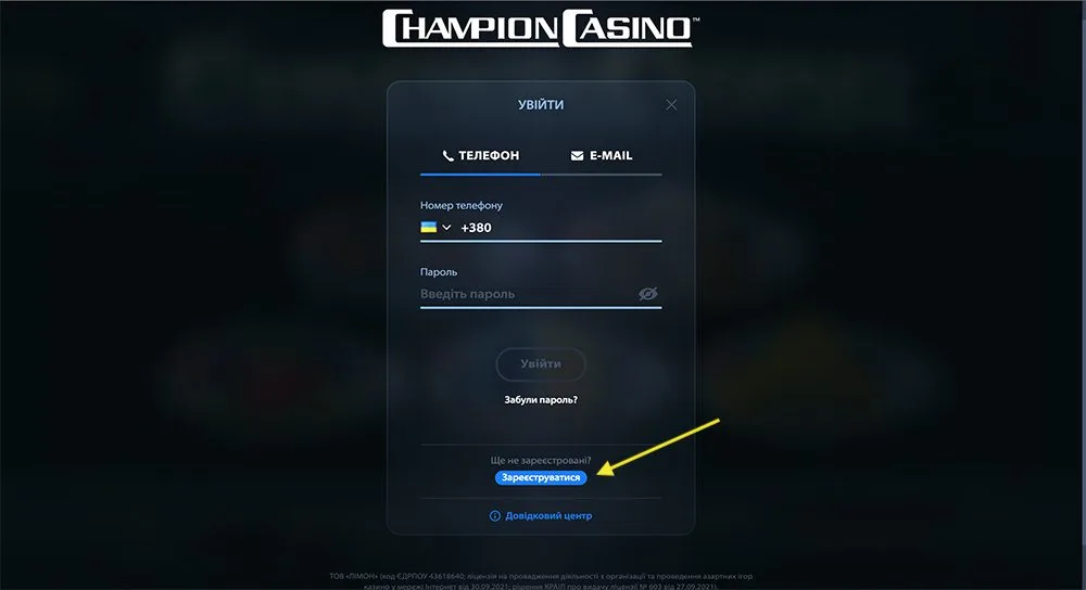Реєстрація у Сhampion Casino дозволяє створити обліковий запис за лічені хвилини. Гравці можуть обирати між двома зручними способами: через номер телефону або електронну пошту. Після підтвердження даних через SMS або email ваш акаунт готовий до гри з першого входу.